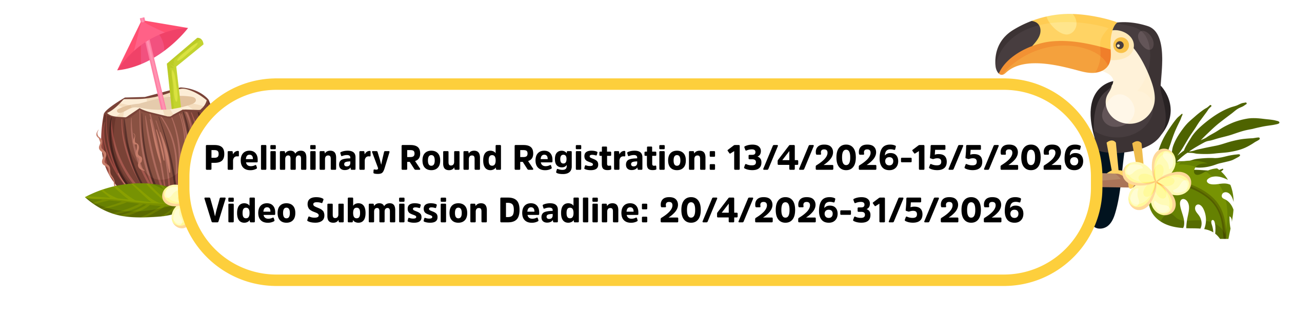 **For each category, additional awards will be given for The Most Popular Award, Most Creative Video Award & The Best Costume Award (these awards will not affect the participants’ competition scores).