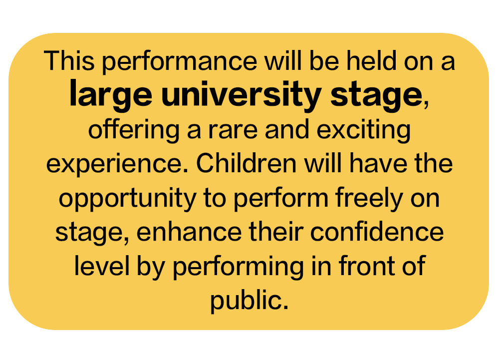 *On the day of the performance, participants only need to attend the performance (2-3 hours). After the performance, parents and children are free to engage in other activities.