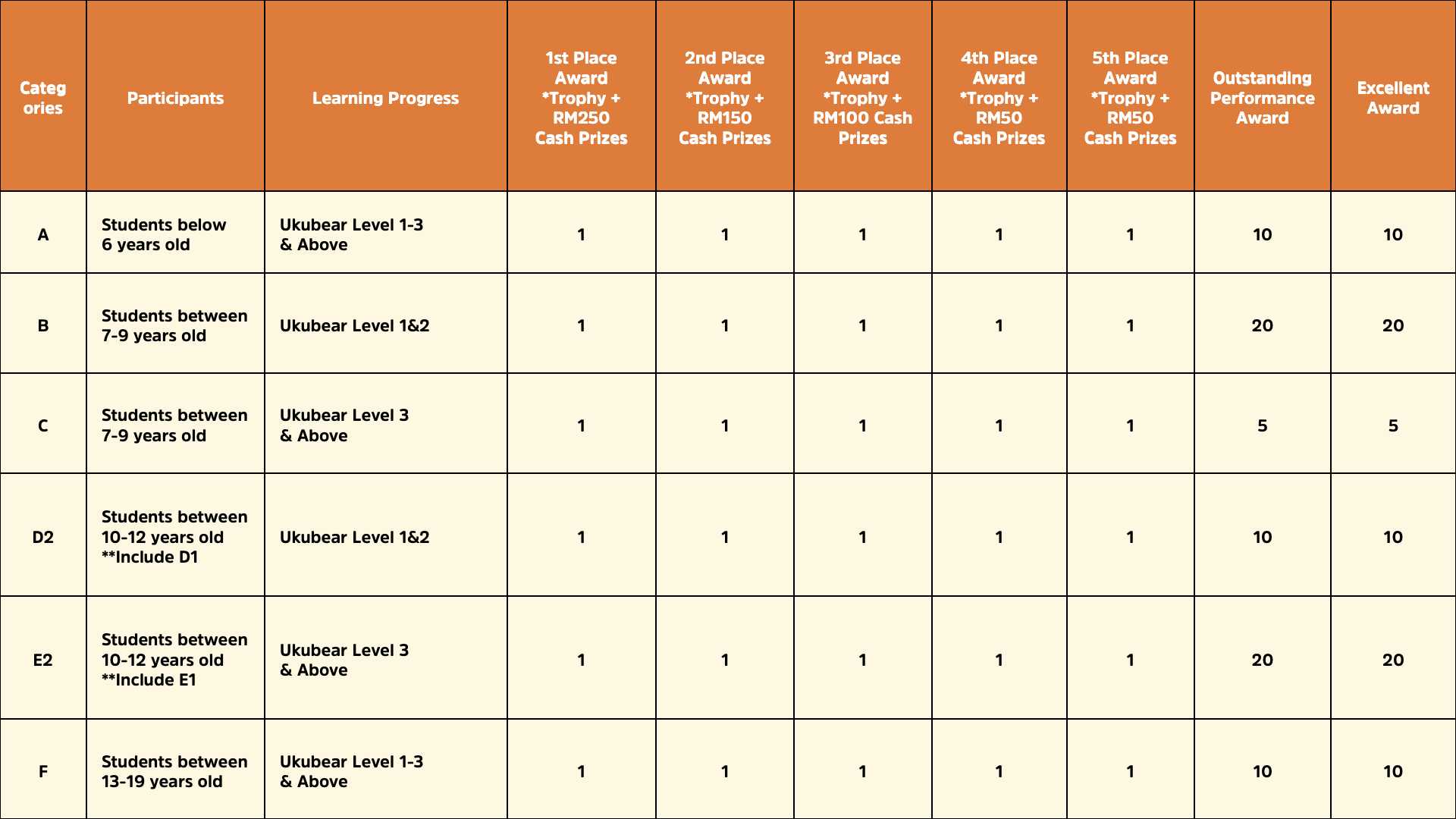 **System will automatically separate competition categories, please ensure your age fill in is correct.